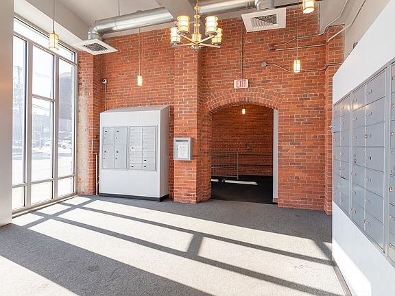 Owner occupy or investors, don't miss out on this spacious 2 Bed 2 full Bath, condo in the desirable SoCo Building! A former shoe factory mill, the building has been extensively renovated to include conveniences of modern living while keeping the great architecture elements from before.This Lower Level unit is the largest in the building and the only one on the floor. Easy access, across the hall to the well equipped gym, multi-purpose room, storage, and guest bathrooms. Enter into the open living concept kitchen/dining/living room. Complete with coat closet, your own utility room with in-unit laundry, overhead lighting, brick accent wall and oversized windows. The main bath is off of the hall across from the 2nd bed. The primary bedroom has a walk in closet and on-suite bath. Includes 1 assigned parking space and entrance at the back of the building, make coming and going a breeze. The BAT transportation, parking center, police station and the commuter rail are across the street.
