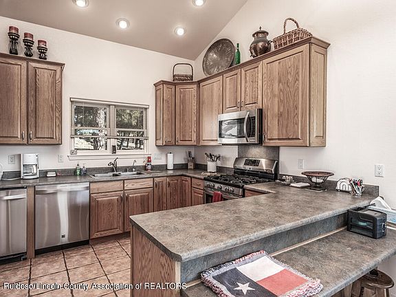Nice Sierra Blanca views from this home with golf membership. Open LR, Kitchen & Dining with cathedral ceilings. 3 BR, 3 & 1/2 Bath, 2 living areas. Double garage with pull through on one side. Level entry. Stucco with metal roof. Very clean condition.