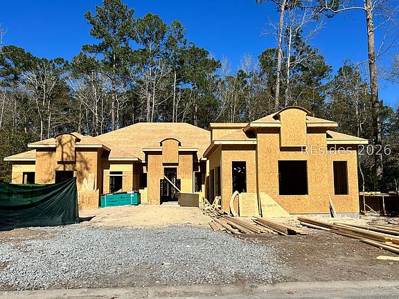 New Build April 2026 Completion! A must-see to believe. One-of-a-kind, elegant open floor plan home under construction in Riverbend. Just over 3,260 sq.ft. with 4 bedrooms, 4 and 1/2 baths, 4-season sunroom and large covered lanai with complete privacy in the rear yard and partial marsh views, all on more than 1/3-acre lot. This home features 2 car garages plus a golf cart garage, impact windows, Linear gas fireplace, 2x6 exterior wall construction. Eight (8) foot tall double wrought Iron front entry doors welcome you to the 14-foot foyer with two decorative art niches and custom tiled wall, 12-foot ceilings in the living room and kitchen with 18 feet full length custom finished feature wall including all custom tile work and 4 decorative niches. The four-season sunroom with large windows is open to the living room and dining room. All other areas have 10-foot ceilings. All exterior house walls and attic have spray foam insulation. Hardwood flooring on first floor, floor to ceiling tile in all showers, large walk-in master shower and jacuzzi tub, cabinets to 10-foot height in kitchen, large island, 8-foot-high solid wood doors, closets with wood shelving, highly decorative moldings and more. NO ORDINARY HOME!