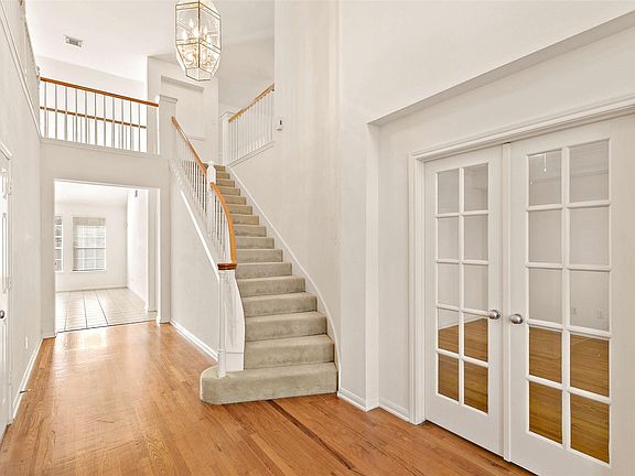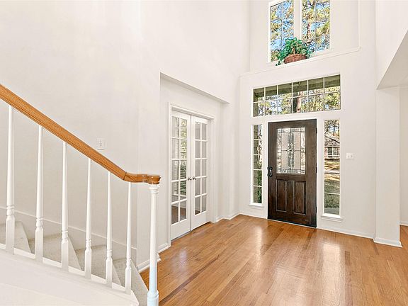Fabulous greenbelt location provides an abundance of privacy. Discover this 4 bedroom, 3-1/2 bath home offering a sparkling pool, a true three car garage, a porte-coche and a gated driveway. A marvelous, two-story foyer entrance entices you to discover the Village Builders, Arlington floor plan. The formal dining and private study boast hardwood floors. The spacious kitchen opens to the breakfast and family rooms. Enjoy views of the sparkling pool from the family room, kitchen and owners' retreat. Your owners' retreat is conveniently located on the first level and has separate closets. Upstairs, nestled around the game room, discover three secondary bedrooms and 2 additional full baths. Enjoy a bird's eye view into the family room from the game room. Extend the entertaining outdoors beneath the porte-coche and around the, sure to please, Texas watering hole. This convenient location is central to many amenities, shopping and dining options offered by life in The Woodlands!