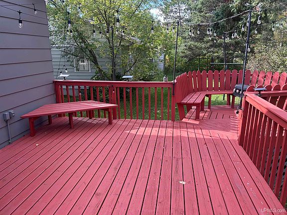 Welcome home to this charming 2-bedroom, 1-bath Ironwood classic! This home is designed for easy living, featuring a spacious living room with great built-in storage and a delightful eat-in kitchen complete with a handy coffee bar. Both bedrooms are upstairs for a peaceful retreat. Step right out onto the deck which overlooks the large, private backyard—your perfect spot for outdoor relaxing and entertaining. Need space? You'll love the huge 26x30 detached garage for projects and the flexible bonus room in the partially finished basement (great for a home office or gym!). Enjoy the community feel: walk to the local park, Mt. Zion ski hill, Gogebic Community College, and popular restaurants.