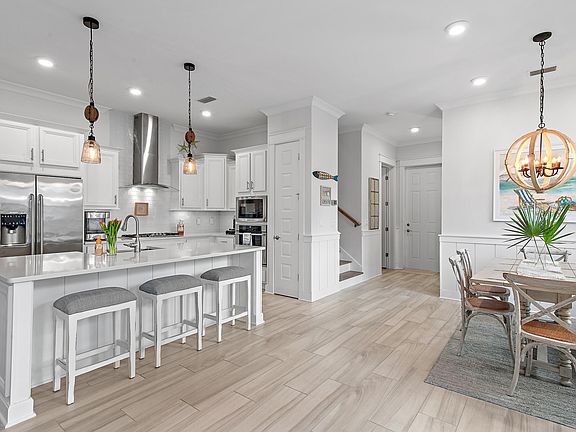 Prominently positioned to showcase the breathtaking views of Deer Lake State Park, the impeccably maintained, never-rented home at 146 Pine Lands Loop #A is a timeless masterpiece of elegance and coastal luxury with a modern flair.Upon entry, the first floor is bathed in natural light, highlighting soaring ceilings, stunning Acacia Ash Porcelain wood-like tile floors, and a beautifully curated color palette. High-end interiors complement the bright and airy atmosphere, while the gourmet kitchen--designed for both functionality and entertaining--boasts elegant Carrera quartz countertops, a striking blue-glass backsplash, an Electrolux appliance package with a gas cooktop, and an extended island with integrated seating and shiplap accents. Upstairs, the sumptuous primary suite is drenched in natural light and features a custom tray ceiling, a cozy seating area, and breathtaking views of the preserve. The spa-like ensuite offers a double vanity, a spacious walk-in wet room with a rain shower, and ample storage. Two additional generously sized guest rooms, each adorned with accent walls, share a well-appointed bathroom, completing the second level.