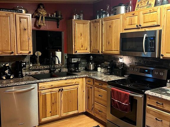 Beautiful, Large DW on a permanent foundation with hurricane straps attached. Seller has made this into 5 BR's, but you can use any of these rooms as a FR or office space, play room, etc. FP in LR is a wood burner. Total remodel from seller and this is a must see. Beautiful kitchen w/ stainless app. The driveway is somewhat steep, so it may be best if you take a higher vehicle so you don't drag.