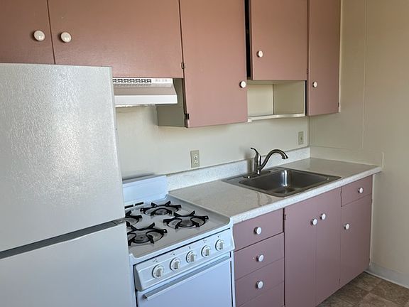 Completely refreshed studio apartment! Newly installed double-paned windows, new vinyl vertical blinds. Chic carpet/vinyl flooring & base moulding throughout with spacious cabinets and appliances, & SS sink.