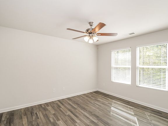 Walk through the inviting front porch to explore this three-bedroom rental home in Dallas, GA. This house boasts a smart home app that allows you to control household technology from a distance on your device. The first floor features a spacious, light-filled living room that leads right into the open kitchen. Its modern stainless-steel appliances, ample white cabinets, and pantry are sure to please the home chef. A dining room overlooks the front yard, and a half-bath is conveniently nearby. Upstairs, you'll find an expansive primary suite with a private bathroom and a huge walk-in closet. A laundry room on the second floor is a bonus. Behind the house is a small wooded area that adds privacy to the elevated deck. Book a visit today.