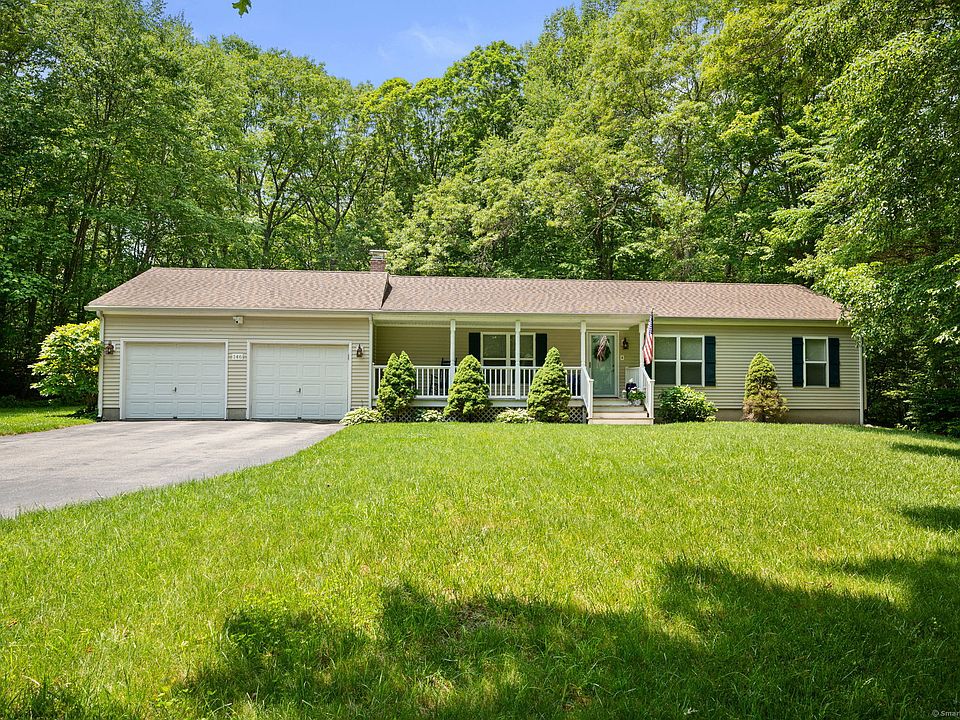 Beautiful three bedroom home offers one floor living, featuring inviting porch and private back deck overlooking sprawling level lawn on 1.87 acres adjacent to Old Lyme Land Trust. Relax in your comfortable living room, dine in your formal dining room, enjoy creating culinary delights in your spacious kitchen with eating area and sliders to deck surrounded by woodlands and privacy. Three bedrooms & two full bathrooms complete the first floor. Additional living space in lower level offers possible office and recreation space. Old Lyme is a gem of a shoreline community, located on both Long Island Sound and the CT River, offering a "White Sands" town beach, public boat launches and walking trails. Art galleries, dining, small shops in addition to the Flo Gris Museum & Roger Tory Peterson Estuary Center both located in the charming Historic District. Enjoy a carefree lifestyle is this sun-filled, well-maintained home in a special town.