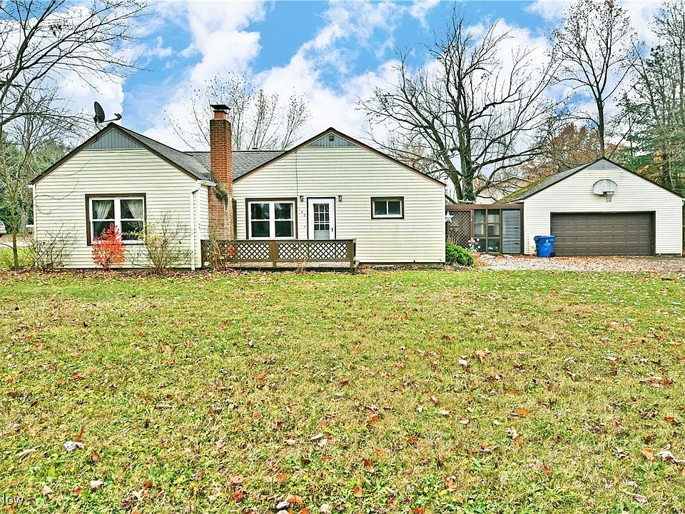 The perfect little three-bedroom ranch just hit the market and is waiting for you with its cozy surroundings and impressively sized lot! Welcome home to downtown Cortland, where this darling corner property is sure to catch your attention. Accented by tall trees, the residence showcases its sprawling layout that includes a central breezeway, tying in the two-car garage. A fenced-in portion of the backyard is located around the back, perfect for containing pets or outlining a patio space. Through the front door, the central great room beckons with rich, wood panel trimmed walls and accenting brick work, all while sunshine spills through a pair of large windows that illuminate the available dining space. Additional bar top seating is found along the wrapping countertops and subsequent, dark stained cabinetry. A walk-in pantry area is available before the breezeway entrance. Adjacent to the kitchen, a short hall bridges a pair of inviting, carpeted bedrooms with a brightly lit full bath. Just past the dining room, a brick trimmed partition extends into a robust mantle with its inset fireplace. The third, master bedroom is found along the far wall as utilities and laundry access are situated in a nearby corridor.