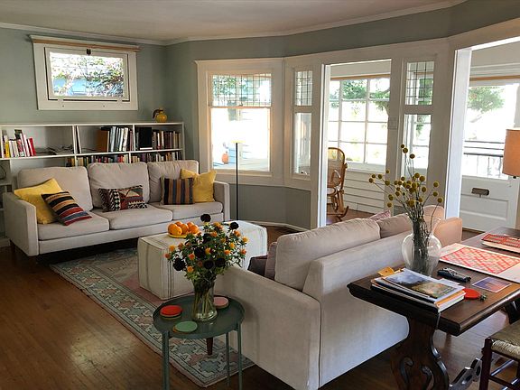 A beautiful beach bungalow located in Ocean Park, perfect for coming summer, surf ready! The home is near the beach (100 steps) on a charming small street with lots of well cared for vintage homes (circa 1900's). The limited number of tenants we have had, have all loved it and wanted to purchase the place to live in forever. There is an enclosed front yard with freshly painted white picket fence, brick pathway and many succulents in the front yard. The back yard has trees, flowering vines and camellias. Front steps up to an enclosed porch with views of the beach. The morning and afternoon light is delightful throughout the home and we especially love the afternoon sun on the enclosed front porch. It's heavenly to watch the waves all day with stunning sunsets. As you walk in, you see many historic parts from original handmade wavy glass windows and leaded glass windows to wood floors and the original front door. The living room is located near the front part of the house with built-in bookshelf and adjoined by the dining area that can easily hold an eight foot table, thereby giving you lots of space at your disposal and easy to move furniture around per season and for entertaining. This bungalow is all about the kitchen, cooking and entertaining for your friends and family, creating many happy memories. A six-burner stove, new stainless steel refrigerator and new ss dishwasher, hanging pot rack, large two section porcelain sink with gooseneck faucet. Plenty of storage and multi windowed space for lots of light. The house is divided into two main sections and the one half has a vaulted ceiling section with multiple skylights bringing in lots of natural light. This area has a large, spacious bathroom with three skylights...so ample light. A 4' vanity with Vola Faucet, a 3' x 4' shower with massage shower head, large mediation area with crisp white cushion. European fixtures and wood floors in front porch, living room, bedroom and bathroom areas. The bedroom is approximately 8.5' x 12' and can easily hold a queen bed. The house is perfect for a couple or single. A ship's ladder takes you to the loft from the bedroom, where you can stand, and again has two skylights and storage. This 9' x 14' area can hold a queen or standard king bed or is perfect for composing music, storage and/or workspace or guest. Sunny office can be used as spare bedroom too, (7' x 19'). To get further information, please email and happy to answer any questions. Live in a distinctive architectural neighborhood by the sea. See spectacular sunsets from your front garden and porch. Come See the views along Fraser Avenue. Wonderful for surfing, biking on the path, painting in the studio, writing, composing, WFH (work from home) Initial preferred lease is two years. No smoking and no pets, thank you kindly. Tenant pays all utilities and gardener. Preferential Parking Permitted.