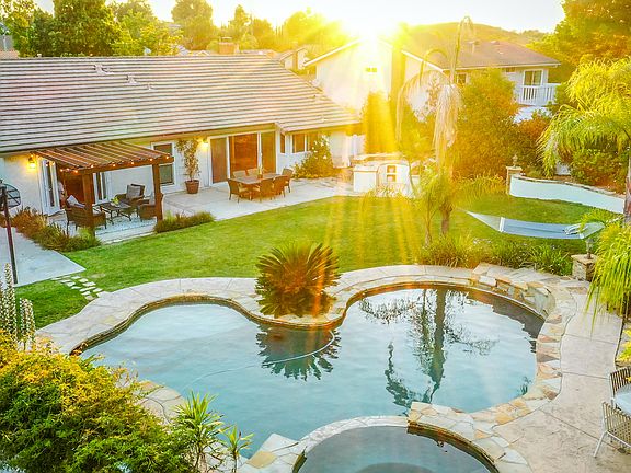 The perfect Family Home. Wide open floor plan, clean, modern, & updated with neutral, quality materials and modern fixtures. Well maintained and never leased. First time on market since 1997. A warm, welcoming entrance opens to your family room with views of the large, well manicured entertainers yard. There's a long list of features that make this a special home including 24" tile & wood flooring, recessed lights, kitchen breakfast island & dining area. Living & family room. Custom cabinets & limestone counter tops. Stainless steel appliances including 48" stove. Indoor & outdoor wood/gas fireplace, exterior lighting, heated pool/spa, basketball court, outdoor kitchen with grill, stove, sink, refrigerator, and bar seating for 8. Concrete pad for RV or boat. Veranda over primary bedroom and a mood lit gazebo. Lease Includes owner paid landscaping & pool maintenance.