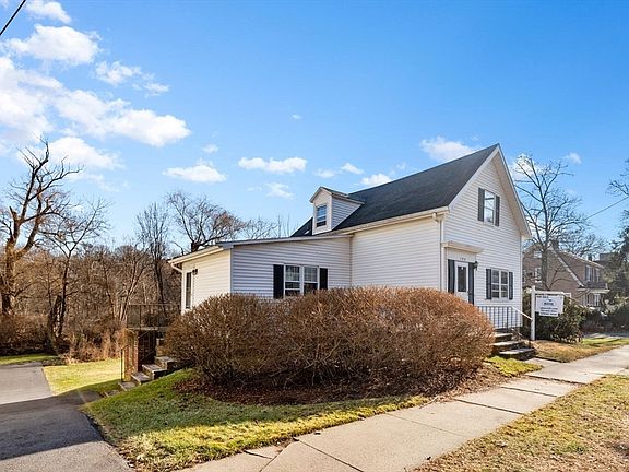 Expanded New England colonial. 1st floor features a large eat in kitchen with gas stove. 1st floor office. Dining room with builtin china cabinet. Living room has a built in book case. Entry foyer with parquet floor. 1 and 1/2 tiled baths. Front to back heated sunroom with lots of glass and closet, possible 3rd bedroom. Walk out lower level to good size back yard abuting a vast conservation area. Two 2nd floor bedrooms, tiled full bath and good closet space. Close proximity to commuter rail and both downtown Greenwood and Melrose centers.