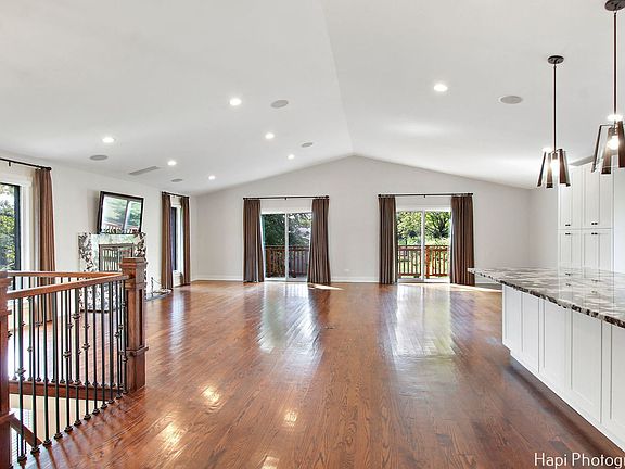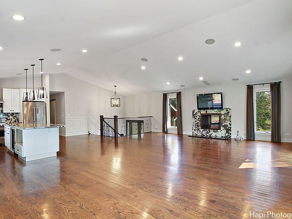 Nestled within the prestigious Barrington Harbor Estates Subdivision, 146 Harbor Drive is a masterfully remodeled bi-level raised ranch that epitomizes luxury and modern living. Located in the highly sought-after Barrington School District and offering coveted water rights to the Fox River, this home is the embodiment of sophistication and convenience, crafted for those who appreciate both style and substance. As you approach this stunning property, you are greeted by a professionally landscaped acre that showcases the home's striking exterior. The long, recently refinished driveway leads to a residence that is both inviting and impressive. The meticulously maintained landscape, illuminated by strategically placed professional lighting, creates a breathtaking ambiance, especially as dusk falls. Mature fruit trees dot the property, adding a touch of nature's bounty to the already picturesque setting. Stepping inside, you are immediately drawn to the open floor plan, where cathedral ceilings create a sense of spaciousness and grandeur. This layout seamlessly connects the living areas, making it ideal for both entertaining and everyday living. The warmth of hardwood oak floors underfoot and the crackling of two wood-burning fireplaces invite you to relax and unwind, while the elegant granite finishes around the fireplaces add a touch of opulence. The heart of this home is undoubtedly the gourmet kitchen, equipped with top-of-the-line Viking stainless steel appliances. Granite countertops provide ample space for meal preparation, while the thoughtfully designed layout ensures that the kitchen is as functional as it is beautiful. Whether you are preparing a casual meal or hosting a grand dinner party, this kitchen is sure to inspire culinary creativity. The master suite is a sanctuary within this already luxurious home. Remote control-operated window treatments in the master bedroom offer convenience at the touch of a button, while the private full bathroom and walk-in closet provide both comfort and ample storage. The bathroom is a true retreat, featuring heated marble floors and Robern lighted cabinets that enhance both functionality and style. Every detail has been carefully considered to create a space that is both serene and luxurious. Beyond the interior, the outdoor spaces of this home are equally impressive. A brick patio at the rear of the property, complete with a charming gazebo, provides the perfect setting for outdoor gatherings. The private fenced patio, accessible through new sliding glass doors, offers a secluded area for relaxation and recreation. For those who appreciate outdoor living, this home delivers in every aspect. One of the most unique features of this property is its private boat dock and harbor access. Exclusive to residents of Barrington Harbor Estates, this amenity makes 146 Harbor Drive a true boatowner's dream. Whether launching your boat for a day on the water or hosting neighborhood gatherings by the dock, this feature adds a layer of exclusivity and convenience that is rare to find. The attention to detail extends throughout the home with recent updates including a new roof, front and back cedar porches, a hot water heater, air conditioning unit, and house heater, as well as an additional heater in the garage. Andersen windows and newer garage doors contribute to the home's energy efficiency and curb appeal. The garage itself is a model of organization, featuring built-in storage cabinets and additional storage spaces under the stairs and front porch. The community surrounding 146 Harbor Drive is just as inviting as the home itself. Barrington Harbor Estates is known for its vibrant community activities, which include an annual Easter Egg Hunt, Halloween costume trick-or-treating, and a grand end-of-summer celebration. These events foster a sense of community and belonging, making this neighborhood not just a place to live, but a place to truly call home.