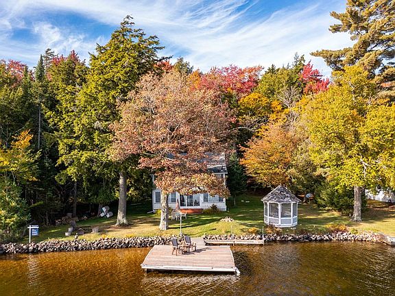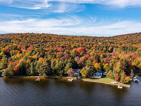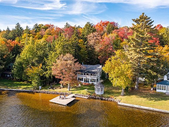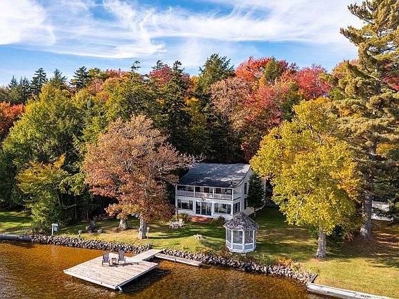This Fourth Lake waterfront camp has so many wonderful features! The waterfront has a pristine, sandy bottom and a large dock to bask in the sun.  The lawn is nice and level with a screened-in gazebo and an area for campfires.  There is a spacious three-season room with amazing views and a propane woodstove.  The eat-in kitchen has ample room for food preparation and adjoins a den and the formal dining room.  Five bedrooms are located on the second story of this charming house, 2 of which lead out to an amazing balcony overlooking the lake.  Located on a private, seasonal road just minutes from the villages of Eagle Bay and Inlet.