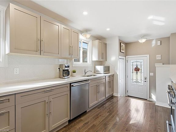 Quiet crescentModern updatesFlexible layoutOpen-concept main floorUpgraded kitchenQuartz countertopsStainless steel appliances
