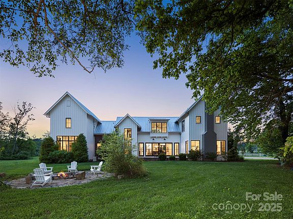 Nestled in the serene mountains of Western North Carolina, this modern farmhouse sits on over 10 private acres along a stocked trout stream. The estate features a spacious 4-bedroom main house, each bedroom with its own en suite bath, complemented by a cozy 2-bedroom guest house. You'll also find a barn with a stable, a charming chicken coop, and pens for other farm animals, all surrounded by ample pasture space perfect for livestock or gardening. A detached garage houses a home gym and sauna, supporting a healthy, whole-body lifestyle. This inviting retreat offers the perfect blend of privacy and simplicity, ideal for those seeking a peaceful mountain lifestyle with plenty of room for animals and outdoor living—all just 6 miles from Whole Foods, 7.5 miles to Fresh Market, 7.5 miles to the entrance to the Blue Ridge Parkway, 13.7 miles to Beautiful Biltmore Estate, and all the fabulous shopping and dining in between!