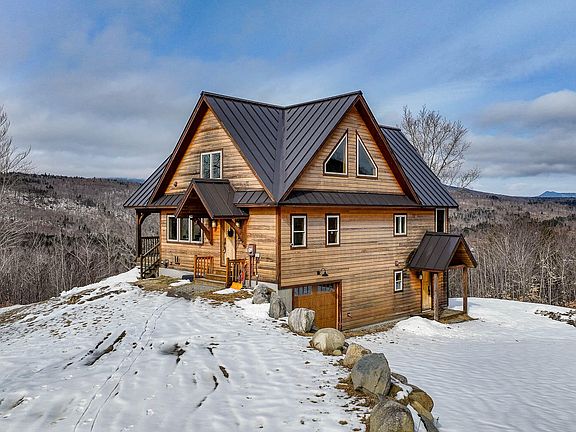 Custom home on nearly 55 sprawling acres, with old growth trees, 575' of frontage on the beautiful Carrabassett River and stunning views from every window. Open and spacious with 3 floors of fully furnished living space. Large primary bedroom with ensuite bath and bonus room in basement. An expansive deck looks out across the valley and mountains and the property boasts stone walls, custom firepit and new trails ready to be enjoyed. Just a short drive to Sugarloaf!