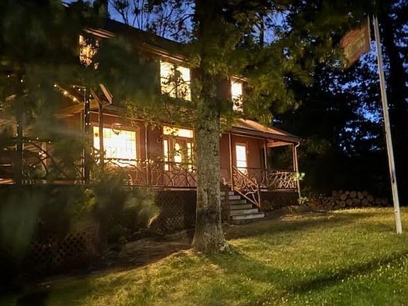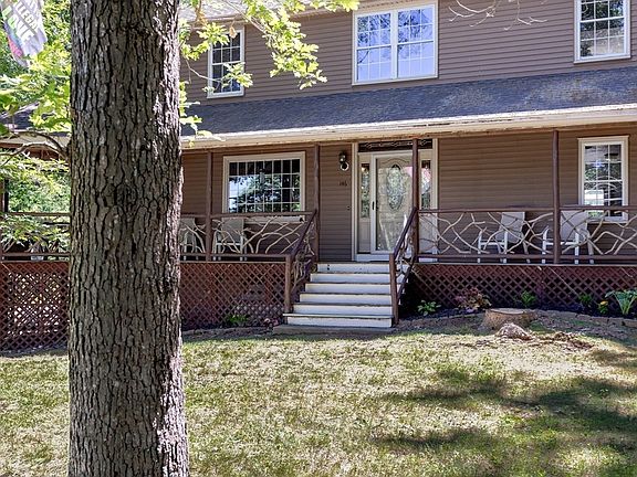 The oasis you’ve been searching for! 3-4 BR, wrap-around deck / gazebo porch with custom detail railings on a full acre of land. Plenty of space for hobbies; additional outbuilding, an RV hook up and yard shed with electricity. First floor layout provides a primary bedroom/bath, door to deck from both primary BR and LR. You’ll love the LR in all four seasons with large sunny windows overlooking your well landscaped lawn. Love the rain? Enjoy listening to the raindrops on the two skylights in the living room and get cozy in the winter with the wood burning stove (plenty of firewood gifted for you to use). Kitchen has so much storage, and the two portable kitchen islands are negotiable. Lofted Dining area gathers your favorite people. Second floor is complete with two more bedrooms/full bath, one with the walk-in closet, great views of the backyard, and an additional office space across the hall. Basement bonus room makes a fun entertainment area/ play room! 2023 Fridge, 2024 DW, deck!