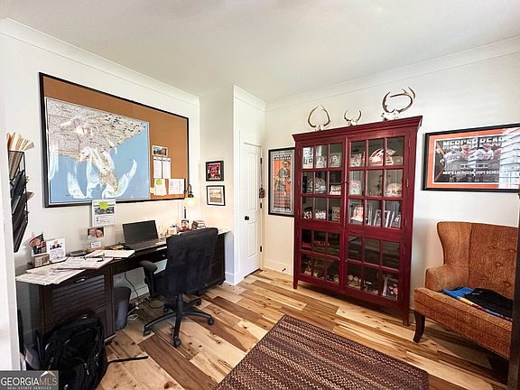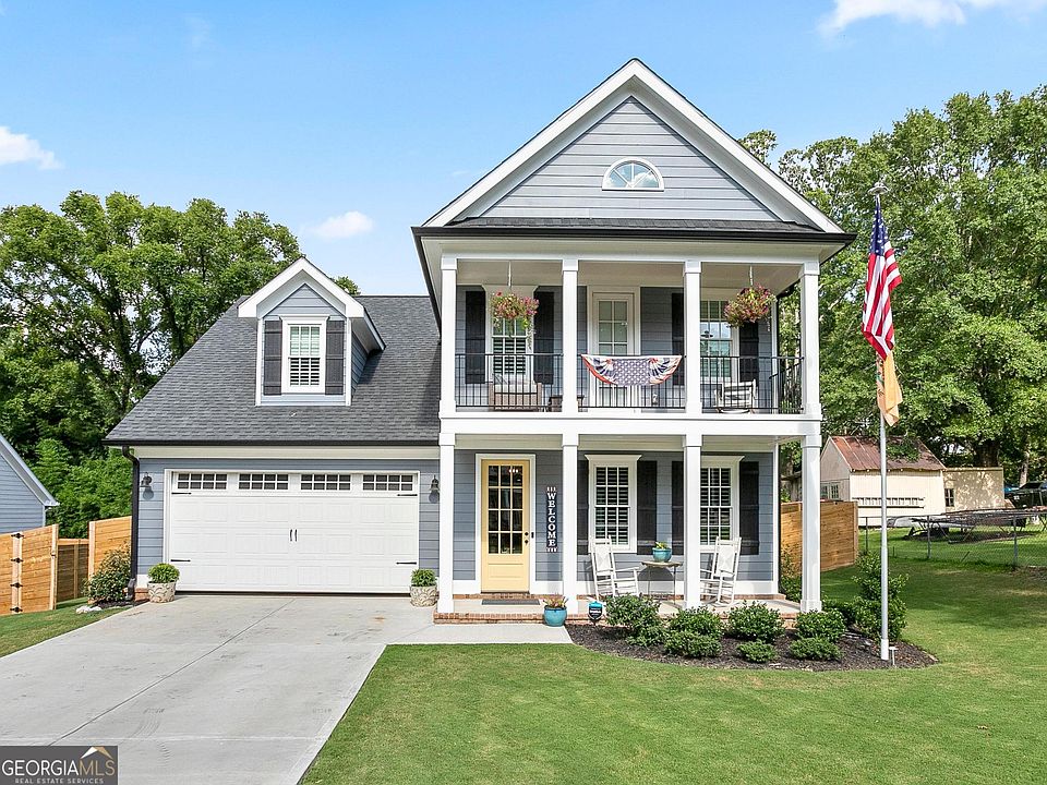 Proudly built by MALLARD RESIDENTIAL in the final phase of Senoia Hollows in beautiful historic Senoia. UPGRADES INCLUDE : Acacia hardwood throughout the main living areas, beams in the primary bedroom, 8 1/4in smooth plank fiber cement siding, Eggshell paint in BM white dove interior, SW Emerald exterior paint, solid core doors on br/baths/office/bonus, solid eggshaped door knobs, Rockwool acoustic insulation in walls, balcony railings upgraded to metal, upgraded plumbing fixtures, brick fireplace, plumbing for tub added for future addition. This home features covered double front porches and a covered back patio. This spacious plan provides room for everyone and everything with 5BR 3.5BA plus an office. The main floor boasts a great room with fireplace, formal dining, kitchen with breakfast area, office, 1/2 bath, and a downstairs guest bedroom with private bath. Upstairs find the luxurious primary bedroom and custom tile bathroom with a large shower, double vanity, and walk in closet. The two additional upstairs bedrooms share a spacious full bath. The huge 5th br/bonus with closet makes for a extra large BR, second living space, home gym, media room, etc. Granite counters and tile showers throughout. Enjoy the vibrant downtown Senoia lifestyle! Walk or cart to downtown shopping, restaurants, and events Senoia has to offer.
