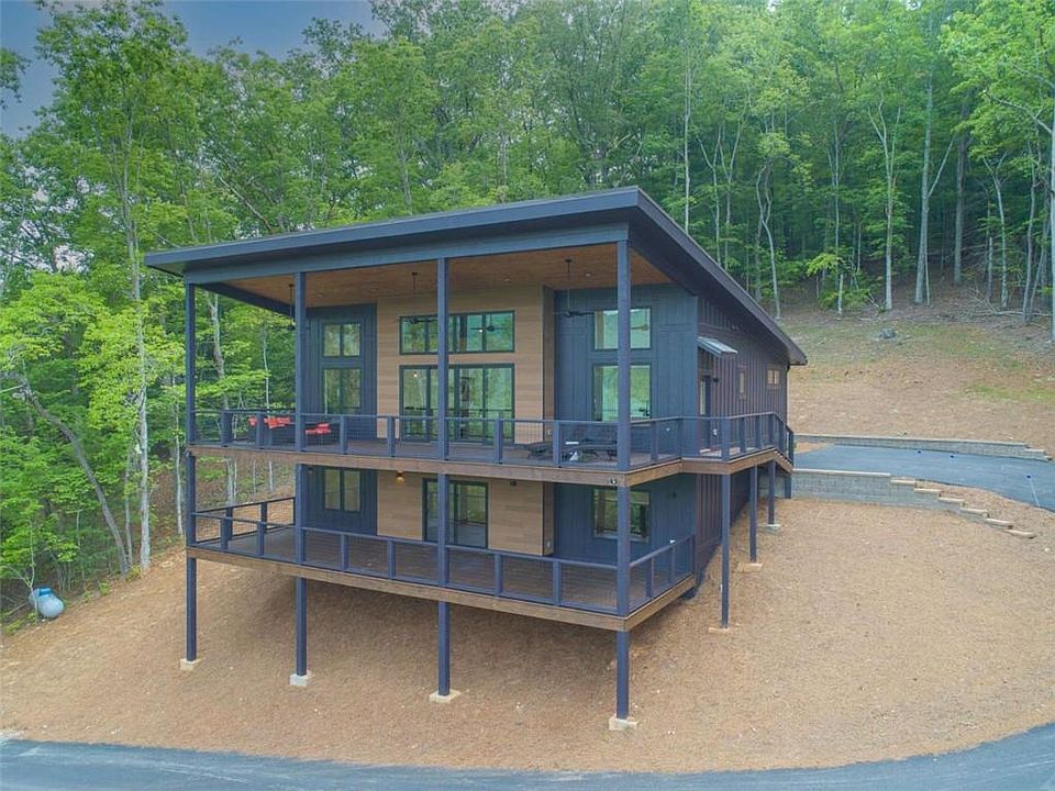 Stunning Modern Mountain House with Exceptional Views - Brasstown Bald is immediately recognizable. You will know you are in the mountains from the moment you walk in the door. If the lake is appealing to you, beautiful Lake Chatuge is just 5 minutes away with multiple Marinas and boat storage. Just 15-20 minutes to 2 Appalachian Trail access points, 30 minutes to Helen. This NEW CONSTRUCTION home offers high end finishes, designer touches, huge casement windows, and high ceilings. The covered decks are a full extension of the living space with an additional 1360 sqft of Lanai area to relax and entertain - soaring ceilings with stylish low profile lighting and ceiling fans on the upper level; plus, a perfect place for a hot tub on the lower level. This house boasts an open floor plan, a Cook's kitchen, New Appliances (microwave drawer, french door fridge with a flex drawer, vented hood, gas stove, and a dishwasher with stainless steel inside and out), tongue and groove ceilings in the living room, a Butler's pantry/Laundry room, Marble Tile, Quartz countertops, a contemporary electric heat producing Fireplace, a downstairs den with a bar and beverage fridge, uniformed cork backed flooring throughout, and so much more. There are also 3 unfinished rooms on the lower level - one with flooring installed that would be perfect for a game room/exercise room/workspace. Plenty of room to grow! The lower level has an auxiliary heater that does not require electricity. A firepit area is a short walk from the front door. You have got to see this house...it is special. Less than 10 minutes to all that Hiawassee has to offer (Restaurants, Stores, Entertainment, Hospital), but it feels like a world away. Just 2 hours from Atlanta. The house is under a one year Builder's warranty. No HOA, but just enough covenants/restrictions to protect your investment. Current HOA has NO Short Term Rental RESTRICTIONS, so there is a vacation rental option.