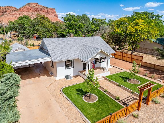 Introducing a well-built home in the highly sought-after location of Kanab in Quiet Rope Subdivision! This gem is a stone's throw away from the park, within walking distance to downtown and the pool. With new windows, carpet, paint, and LVP floors in the basement, along with newer HVAC and roof, this 4-bedroom, 1-bathroom home offers the potential for a second bathroom downstairs. Relax under the covered patio, soaking in the breathtaking mountain views in your private, fully fenced yard. The second driveway presents an excellent opportunity to add an ADU (mother-in-law apartment). Enjoy quick access to Zion National Park, Bryce Canyon, Vermillion Cliffs, and Coral Pink Sand Dunes, centrally located amidst nature's wonders. Whether you're looking for your forever home, a vacation rental or a second home, this property is the perfect fit for your dreams!