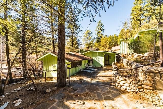 Rare Upper Canyon opportunity. Rio Ruidoso frontage in secluded location. Cabin features a large main suite with 3 guest bedrooms. River decks off of the main suite, family room, and guest room.