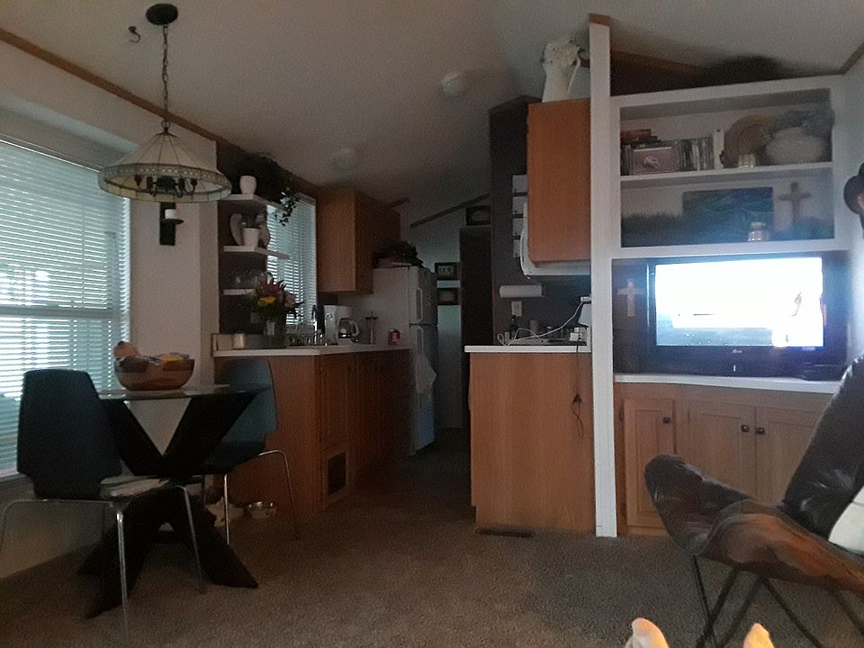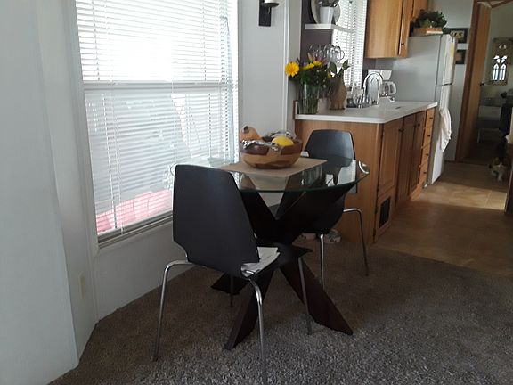 Furnished park model with washer and dryer. Very nice 55 community with pool, laundry room, library and billiards room.
