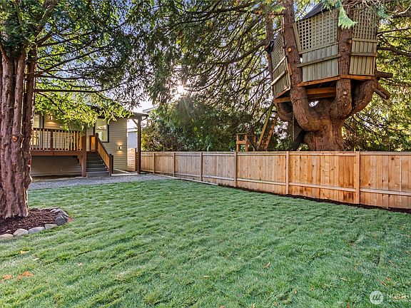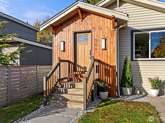 Welcome to this spacious Phinney Ridge Craftsman! Beautifully renovated throughout, new electrical and plumbing, new windows. The main level features 9-ft ceilings, two bedrooms, a full bathroom, a stylish modern kitchen with upgraded smart appliances, sleek cabinets, and LED lighting. Inviting living room with a contemporary fireplace. The lower level offers a flexible living space with a separate entrance perfect for use as an ADU. It includes a full kitchen, dining area, bathroom, large bonus room that can serve as a bedroom, and a utility room. Additional highlights include a tankless gas water heater, A/C, fenced backyard, covered deck, and park-like seating area—ideal for relaxing. A private parking pad provides on-property parking.