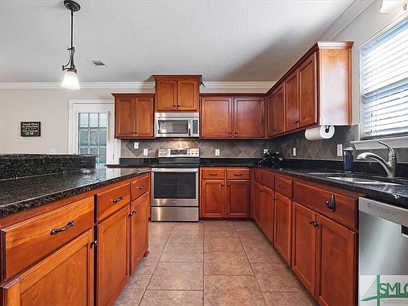 Pristine 4 bedroom 2.5 bath home on over an acre lot with NO HOA. This home features many upgrades not standard in this model. Formal dining room leads to spacious kitchen with Stainless Steel appliances, granite countertops, separate pantry and a large breakfast bar. A small office and half bath complete your first level. Retire upstairs to your owners suite and bath featuring garden tub, separate shower, double vanities and large divided closet. A guest bath and 3 additional bedrooms and laundry room complete your second level. All carpet in the home has recently been replaced with high end pile carpet, adding extra cushion to your living area. A covered patio overlooks your large fenced yard that backs up the wooded area that completes your lot. Located only 5 minutes from the Hinesville shopping area and 15 minutes to Fort Stewart in one direction and 25 minutes to Midway and I-95 in the other direction. This home has been well maintained and loved.