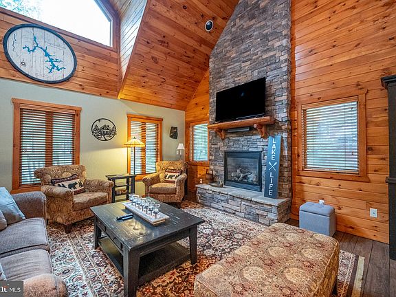 Beautiful lake home with lake access and a boat slip! This rustic mountain lake home features an upstairs loft, radiant floor heat, tankless hot water, a gas fireplace in the living room, granite counters, stainless kitchen appliances, a primary bath tiled shower, 2 car attached garage, a very large back deck, hot tub, and a massive outdoor wood burning fireplace! Very quiet setting. Above the garage is a large additional sleeping area/bedroom/family room. The nearby community lake access area is mostly open and great for spending summer days down by the lake. Located within minutes to all central lake restaurants, marinas, shops, and the Deep Creek Lake State Park - and also within 10 minutes of Wisp ski resort!