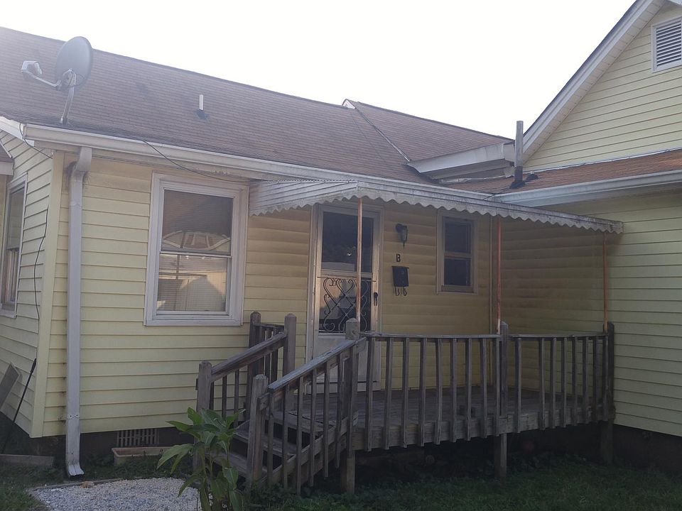 Large apartment, middle unit of a triplex. New carpet and vinyl. Very large 2 rooms, smaller front room that has been used as a bedroom. Dining area and large kitchen. Washer and dryer hookup inside unit. Gas heat, electric stove, electric water heater, central air.