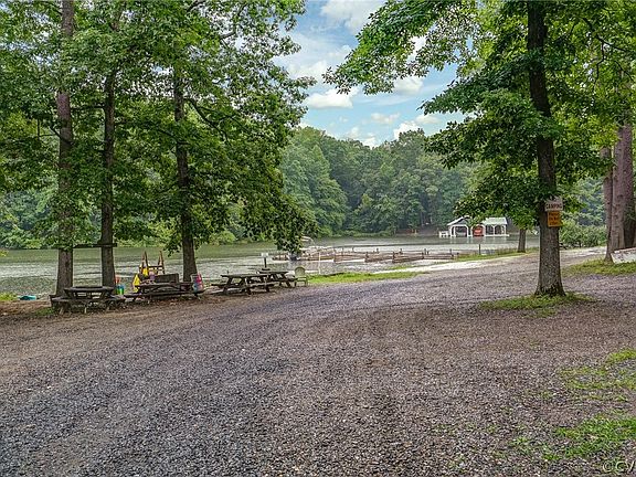 BACK ON THE MARKET, NO FAULT OF SELLER OR PROPERTY. Buyer’s financing was denied, so this gem is back on the market! Home inspection report is available and fresh repairs have been made! Ready for quick move-in. Here, you'll enjoy easy and quick access to the lake because the water is a short walk away, where you'll find boat slips, a picnic area and more. This one-story rancher offers 1,300+ square feet with 3 spacious bedrooms, 2 full bathrooms, a large living room with a fireplace, large kitchen with a connected eating area, a covered front porch where you can enjoy your coffee, and a massive sunroom (added in 2021) with vaulted ceilings, exposed beams, and a ceiling fan, perfect for enjoying the warm sunshine. The master suite includes a large walk-in closet, ceiling fan, and full bath with shower. This lake house also comes with 3 generous outbuildings! A massive detached garage (roughly 40x30), a workshop with electricity, a shed with electricity and a massive pole barn beside the detached garage.