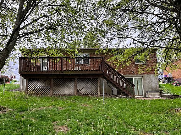 Living room, eat in kitchen 1 bath with rough in for second bath, 3 bedroom, full basement with walkout to patio, all BRICK, and original HARDWOOD floors. Home was built in 1968 on a large lot with mature trees.