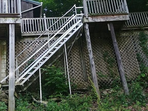 This is a unique property there are a total of three lots with separate deeds. This home also comes with all content a boat dock and pontoon ( hasn't been used in year so not warranted). This is an exceptional deal 4 a fisherman's dream or vacation escape home. close enough to surrounding areas you could just run down for the weekend to get away from all the chaos. Heat and air units are present but not installed a Franklin wood burning stove is the source of heat present owner uses. notice the uniqueness and the picture of the living room wall it is part of the rock Clift. Don't miss out on this unique property call for your showing today. DON'T BE Afraid TO BRING OFFERS no!! children during showings** for safety
