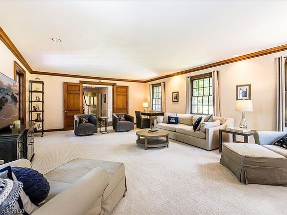 Live, work and entertain with ease in this impeccably maintained and beautifully appointed Colonial situated on 1.85 acres of exceptional property in one of northern NJ's most desired towns. Highlights include lovely formal Living and Dining Rooms, cozy Family Room, gourmet eat-in Kitchen, large Butler Pantry, sunny Breakfast Room and charming wrap-around screened-in Porch that overlooks the resplendent grounds and pool. Upstairs, the Primary Suite offers the luxuries of space and privacy with an updated Bath, wood burning fireplace, Sitting Room and walk-in closets. Four additional Bedrooms (one en-suite), two full Baths, one half Bath and Office complete the second level. On the lower level, you will find a Recreation Room equipped with a wet bar and fireplace that opens to the Patio and in-ground heated Pool, a full Bath, Laundry Room, Workshop and access to the 3-car Garage. A sweeping lawn, perennial gardens and specimen trees enhance the tranquil setting. Essex Fells is a peaceful oasis known for its extraordinary natural beauty and excellent schools - only 23 miles from NYC.
