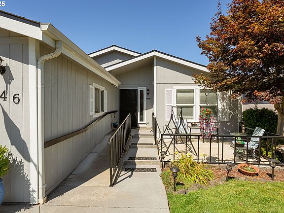 Well-maintained 3 bed, 2 bath, 1,972 sq. ft. home in Littlebrook 55+ community. From the moment you pull up, you'll appreciate the curb appeal, quality landscaping, front patio, newly installed 50-year roof, and access ramp. Interior features include a spacious kitchen with oversized island, walk-in pantry, primary suite with double sinks, walk-in shower, and large closet, plus vaulted screened porch, oversized 2-car garage, and yard. Space rent of $1,084 covers front yard care. Sewer is billed monthly at a flat rate of $15.92, while each home has a smart water meter with water usage billed through rent. Community offers a walking trail along the Umpqua River, fitness room, billiards, shuffleboard, sewing group, library, card nights, monthly luncheons, kayaking group, and annual performances. Don’t miss out, call to schedule your tour today!