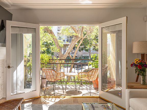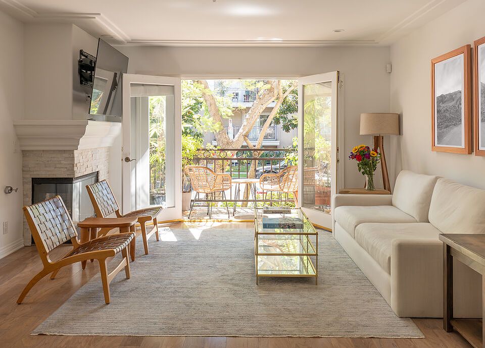 This beautifully maintained 2 bedroom, 2 bathroom condo offers 1,472 square feet of comfortable, private living in a boutique 8 unit building. With no shared walls and a second floor location in an elevator served structure, the unit lives more like a standalone home. Each bedroom is well sized with generous storage space. Primary bathroom features dual sinks, bath tub spa, and freestanding shower. Both bathrooms have white carrara marble countertops, floors, and showers. Features include a private front patio, a dedicated doggy patio with BBQ area, and in unit laundry with full size washer and dryer. A bonus nook is perfect for a home office or Peloton setup. The spacious kitchen offers stainless steel appliances and generous cabinet space. New dishwasher, range, and HVAC system were all installed in 2024. Gas meters replaced in 2023. The HOA covers building, water and sewer, common gas and electricity, trash, landscaping, elevator maintenance, and more - making ownership simple and low maintenance ownership. Ideally located between Beverly Hills and West Hollywood, in one of LA's most desirable and walkable neighborhoods. This home is move in ready and available furnished.