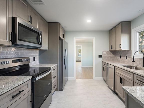 Charming and fully updated 3-bedroom, 1-bath ranch home located on a spacious corner lot in the desirable Darlington Pinecrest neighborhood of Pawtucket. This move-in ready home features a modern kitchen with stunning granite countertops, stainless steel appliances, and brand-new fixtures. Throughout the house, you'll find new flooring and an updated bathroom that adds to the home's fresh, contemporary feel. The finished lower level offers additional living space, complete with a bonus kitchen—perfect for entertaining or extended family use. Outside, enjoy a fenced-in patio and a two-car garage for added convenience. Don't miss this opportunity to own a beautifully upgraded home in a prime location!