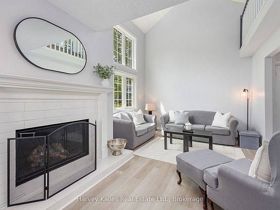 Fantastic Investment/Rental Property or second home close to Blue Mountain. This delightful 4-Bedroom Townhome - Minutes to Blue Mountains in the tranquil community of Heritage Corners. With soaring ceilings, a sun-filled ope loft, and a welcoming open-concept layout, this home blends perfect comfort, function and recreation all in one. The main level features a bright living room anchored by a gas fireplace, large windows and sliding glass doors off of the dining area that open to a private garden patio - ideal for summer BBQ's and outdoor dining. The kitchen is adorned with sleek grey quartz countertops and white tile black-splash. Two cozy bedrooms on the main floor share a stylish 4-piece bath, perfect for guests or family. Upstairs, the primary retreat is flooded with natural light and offers three separate closets, sliding doors to a private balcony, and a spa-inspired 4-piece ensuite complete with double sinks and a tiled walk-in shower with built in bench. The adjacent loft area is ideal for use as an office space, art studio or reading nook. The lower level offers a large rec-room, perfect for movie nights or a game of pool. A 4th bedroom, 3-piece bath and a spacious laundry room are also found on this level. This home is part of a friendly community offering access to a seasonal outdoor pool, tennis courts, and a games/community centre. Steps away from Tyrolean Village Park - with a playground, half basketball court, and dog park - and minutes to Blue Mountain Resort, Northwinds Beach, and the shops and restaurants of downtown Collingwood. Tucked in a quiet and peaceful neighbourhood, this is the perfect spot to enjoy the best of summer and fall in the Blue Mountains - right at your door step. This price includes the furniture and ready to lease or move into!