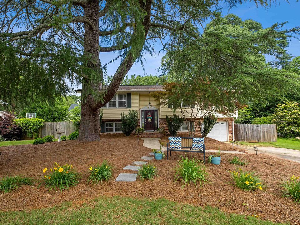 GOWER ESTATES!!!! This beautifully maintained home features 4 bedrooms, 2 full baths. The foyer, dining and living rooms have beautiful Hardwood floors! There are also Hardwoods under the carpet on the main level hall and bedrooms. The completely remodeled and updated eat in kitchen provides plenty of storage and solid surface countertops. A large lower level den, complete with a gas log fireplace opens up to a nice size sunroom. The Trex deck above is maintenance free! Imagine relaxing beside the built-in fire pit under the Pergola, while the kids jump on the trampoline which conveys. The extra storage shed provides space for lawn mowers and tools. The 4th bedroom and updated remodeled bath are on the lower level along with a storage/workshop area and single car garage. The popular Gower Community Pool is an easy walk just down the hill! Make your appointment quickly to see this lovely home in one of the most popular neighborhoods in Greenville!