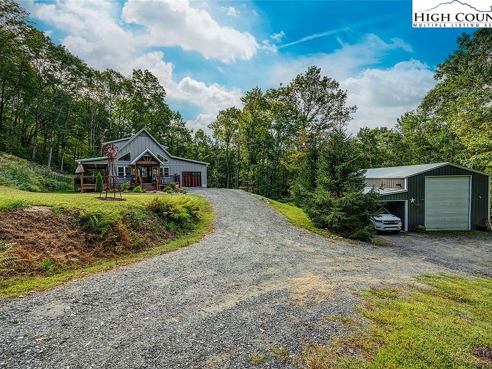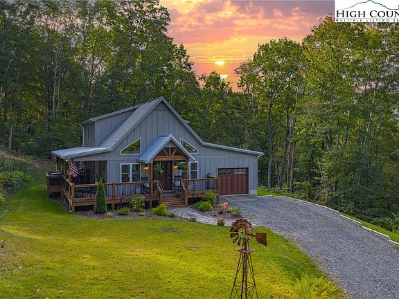 Looking for a stunning mountain getaway or a second home with a keep your RV? This beautifully crafted 3-bedroom, 2-bath home offers the best of mountain living—conveniently located just 20 minutes from Boone and West Jefferson and only 1.5 miles from Benge Gap on the Blue Ridge Parkway. Built just 3 years ago, this home features a spacious open-concept floor plan with a large kitchen outfitted with upgraded stainless steel appliances, a stone propane fireplace, and generous deck and porch space for relaxing or entertaining. The primary suite is oversized and inviting, while the finished one-car garage includes flooring and its own AC unit for easy conversion to additional living space or a home office.