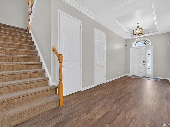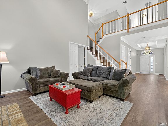 Close to shopping, restaurants, train, major highways. Custom Colonial, Primary bedroom with an ensuite, bathroom on first floor. Cathedral ceiling, new luxury vinyl plank flooring on first floor, gas fireplace, 2 story entry foyer with tray ceiling. Laundry on first floor. Upstairs opens to a loft with 2 bedrooms, full bathroom. Finished basement with office/den and abundant storage.
