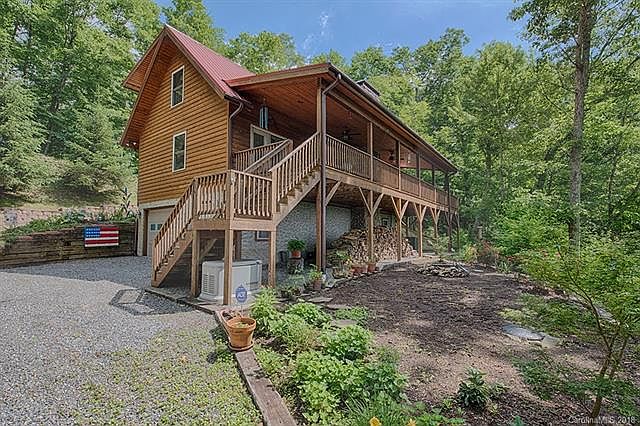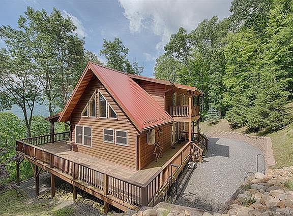 Your cabin in the woods with multi-layer, long range views, year-round. Wood floors, T&G walls and ceilings. Two-story great room, stone faced, wood burning fireplace and open kitchen, granite and stainless appliances welcome you inside, if you can get past the tempting, wrap-around the porch... cool breezes and peace. Main level entrance/parking with Master-on Main. Spa tub in master bath. The upstairs bedroom and bath have their own loft that is open to the great room and kitchen below, also a covered, balcony porch just outside the loft. The finished basement area offers a large family room, full bath, space for extra bed(s), and its own wood burning stove. 1-car garage with large workshop area, utility room and laundry area. Whole house 22k Generator. You can see the Blue Ridge Parkway from the porch. LeafGuard gutters. Exceptionally well maintained.