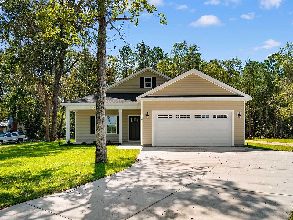 Wonderful 3 bedroom/2 bath home on .79 acre of land with no HOA. This beautiful Palm II floor plan features a spacious dining nook area, large living space with ceiling fan, granite island kitchen, large bedrooms, multiple storage closets, and a sprawling rear lawn. The upgraded kitchen boasts stainless appliances, wood cabinetry, recessed lighting, and much more. Enjoy your meals at the breakfast counter or in the spacious breakfast nook area. The large master bedroom and bath features a walk-in closet, large shower, and linen closet. Exterior features include a concrete parking pad, entry sidewalk, garage, low country front porch, rear porch and patio, and much more! Call today to view this lovely home! *Photos updated 9/5/25***