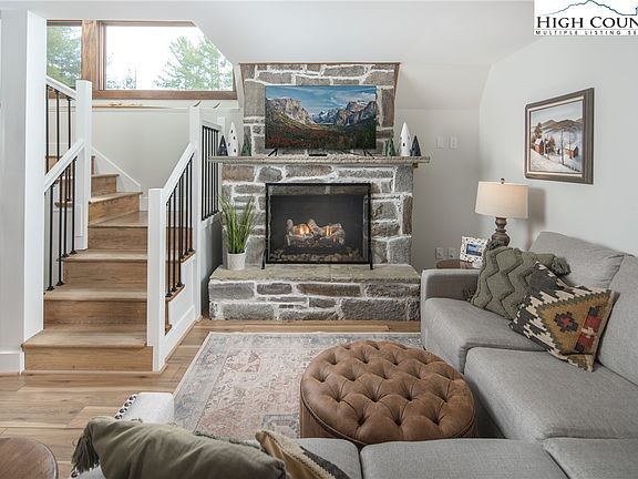 Welcome to this beautiful, charming, recently remodeled 3 bedroom 2 and half bath home located minutes from Downtown Boone and Appalachian Ski Mountain! This home is the perfect blend of mountain charm and modern comfort. Whether you are looking for a full time residence, vacation retreat or investment opportunity, this property checks all the boxes. As soon as you step inside you are welcomed by an open and light living space and kitchen. Home has been fully renovated in the last 5 years, with many recent custom renovations. As you go inside on the main level you will find a fully renovated kitchen with custom cabinets , wormy chestnut floating shelves and custom back splash. The living room is centered around a beautiful stone fireplace with new gas logs, and trimmed out with wormy chestnut accents. A new installed wet bar with quartz countertops is located in close proximity to the kitchen. The primary bedroom and bathroom is located on the main level and is impeccably decorated and furnished. Head upstairs to the find 2 more spacious bedrooms and a bathroom, each fully renovated to include new Luxury Vinyl plank flooring and custom accent walls. Each bedroom has a serene and peaceful feel- great for unwinding after a busy day of work or play. The 4th floor of the home has two additional sleeping areas and a half bathroom; this is not counted in overall square footage due to ceiling height. The basement level of the home is fully equipped to entertain with space for watching TV or enjoying family game night. Laundry room is located on this level as well. Other upgrades include, but aren't limited to, stained deck and wood exterior, new fencing and landscaping and new gutters- a full ll list of improvements is available. Home also conveys with a large additional lot flat lot that can be built on if desired. Home is sold fully furnished minus a few small exceptions. This is the one you have been waiting for! Come see today!