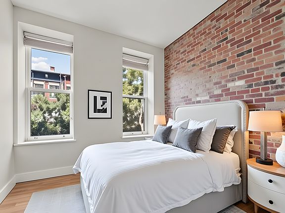 Spanning approximately 1,100 square feet, this elegant home features 2 bedrooms and 1.5 baths. Flooded with natural light from floor-to-ceiling windows, the apartment exudes warmth and comfort with gleaming hardwood floors, exposed brick accents, and soaring ceilings that enhance the sense of space.