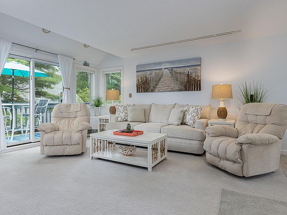 BEST MAINE BEACH- Steps away from this beautiful condo at Ocean Park Meadows. Private end unit on top 2 floors is loaded with sun and light. Revovated with new kitchen, quartz counters, new baths. Heat pumps on both levels and energy efficient rinnai heater. New baths and walk in shower. On 10 acres with 2 ponds, clubhouse with fitness room and large pool. Tennis courts. Weekly rentals permitted and owners may have a small dog.