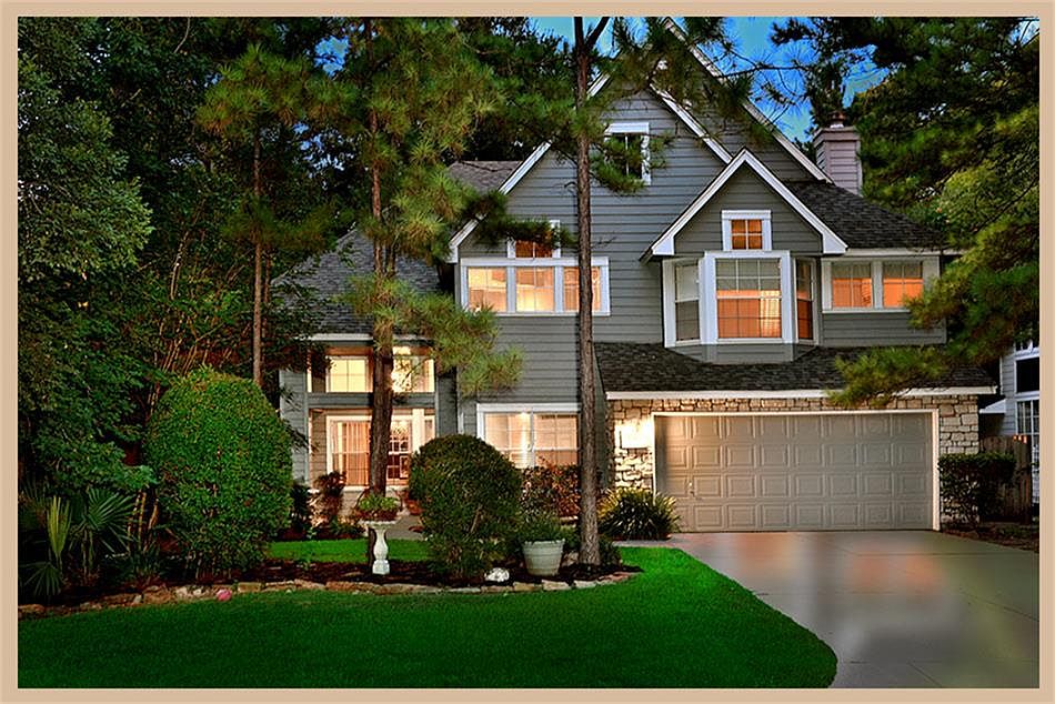Wonderful LifeForms home that backs to a lush greenbelt in Alden Bridge! Nestled on a cul-de-sac, this home features hardwood & tile floors, soaring ceilings, neutral paint colors, built-ins & abundant windows that provide natural light throughout. Island kitchen w/quartz counters, breakfast bar, SS appliances & stained cabinets; sunny bkfast rm; both formals; den w/cozy fireplace; private study; all 4 bedrms & gameroom up; screened-in porch overlooks the wooded, fenced yard w/no rear neighbors.