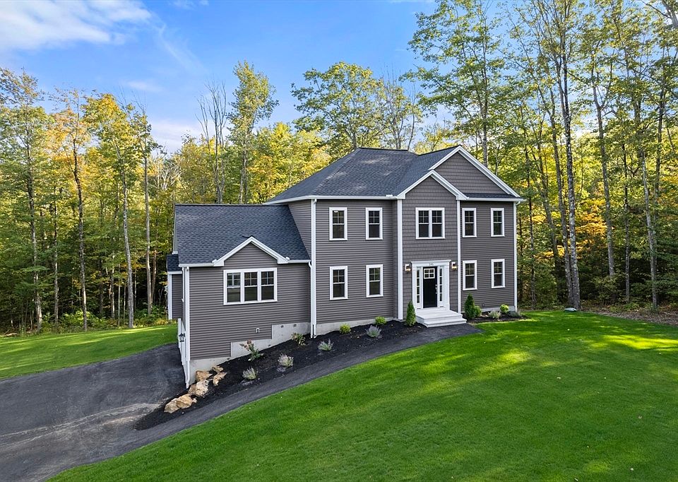 Welcome to your brand-new construction retreat, privately set on 6 acres of natural beauty. Step inside the impressive foyer and discover a stunning chef’s kitchen w/shaker cabinets, granite, a spacious island with seating for three, walk-in pantry, and half bath. The sunlit breakfast area flows seamlessly into the cathedral-ceiling living room, where a cozy gas fireplace awaits for chilly winter nights. Host gatherings in the elegant dining room with classic wainscoting, and work comfortably from home in the private study with French doors. Step out onto the expansive composite deck, sip your morning coffee, and enjoy the soothing sounds of your very own waterfall. The luxurious primary suite offers a spa-inspired bath with a custom shower and large walk-in closet. You’ll find two more bedrooms, a full bath, and 2nd fl. laundry. Enjoy a two-car garage, W/O basement, and central A/C for comfort year-round. Near Holden amen. & Princeton skiing and hkng & Rail Trail! BOM due to financing