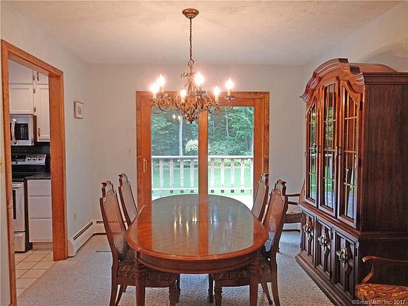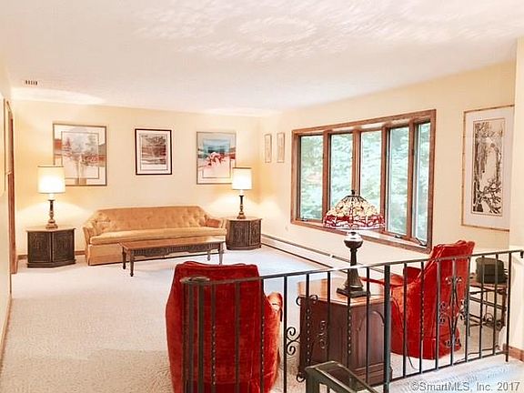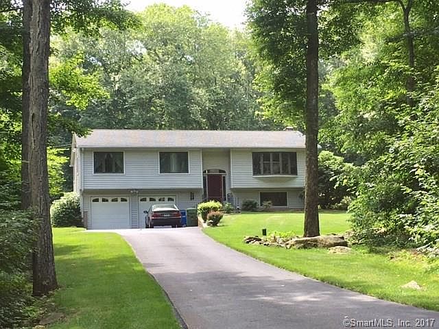 Gracious raised ranch privately sited well back from the road. Spacious, bright living room with bow window and berber carpet (over hardwood). The whole main floor with the exception of kitchen and baths is beautiful hardwood. Formal dining room with slider to oversized deck. Updated bright eat-in kitchen boasts large skylight, white cabinetry, granite counter tops, pantry and stainless appliances. Three bedrooms, 2 full baths. New roof 2016! New furnace 2016! Automatic generator! Air conditioning. Wood burning fireplace in 28'x23.5' lower level famiy room with cherry built-ins and tile flooring. Impeccably maintained. Spectacular, over 1 1/2 acre secluded back yard fringed with ferns and mature trees. Two car garage. Garden shed 12"x16'. Propane used for generator. 330 gal. oil tank 6 years old. Extra insulation added - R49 in attic, R19 in lower level ceiling.