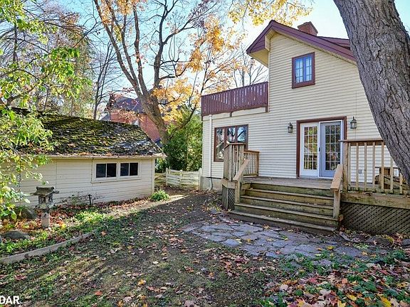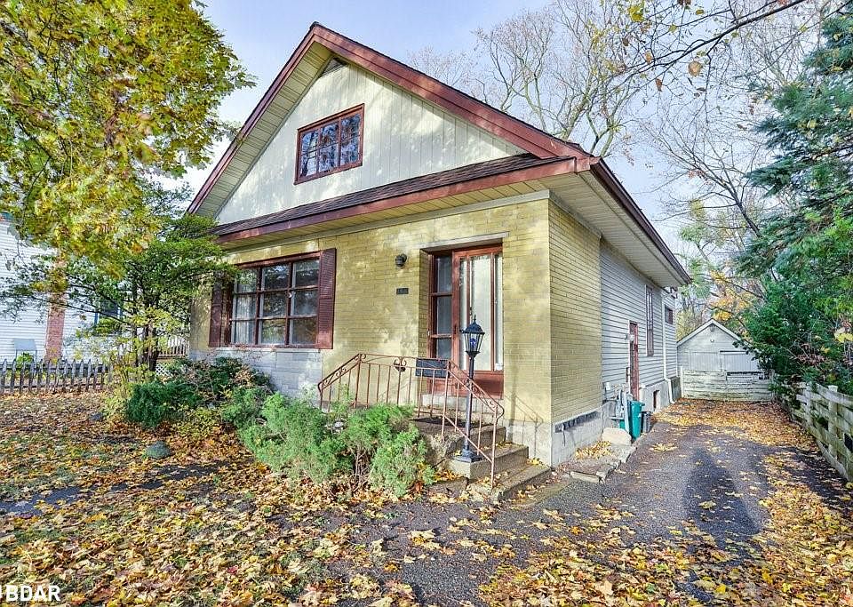 Built circa 1935, this one-and-a-half storey home, with a main floor addition in 1978, has lots of room. It’s located in a central northward neighbourhood, within easy walking distance of Couchiching Beach Park, the Orillia Opera House, public library, downtown shops & restaurants, as well as schools and churches. The home has an amazing floor plan and many original finishes, including hardwood floors and trim work on the main floor and a coffured ceiling plus plate rail in the dining room. The eat-in kitchen, updated in the 1990s will surprise you with its oak cabinetry, under cabinet lighting, granite countertops and brick accent wall with built-in bookcase. There is also a 2-pc powder room plus a walkout to a backyard deck from the kitchen. As well as enlarging the kitchen space, the addition included a sunken family room with wall-to-wall brick fireplace, built-in bookcases, pine wainscotting and a stained glass window. The full basement is approximately 6ft. high and used for storage and laundry facilities. The level lot features mature shade trees and a granite stone patio with potential as an outdoor living space. The single driveway can accommodate parking for three cars. Whether you are looking for a fix and flip project, or want to settle in to raise your family, this home has so much potential! It’s vacant and easy to view.