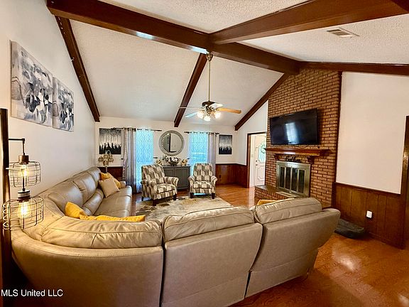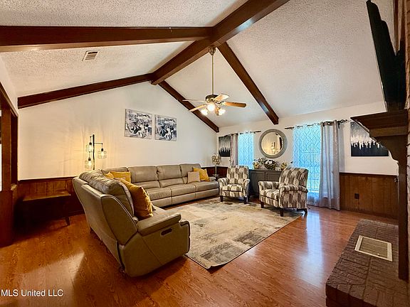Brand New Roof!!!! Adorable 3 bedroom 2 bath with over 1500 sq. ft. of living space! Formal entry, spacious living room with beamed vaulted ceilings and brick fireplace. Kitchen with plenty of cabinet and counter space and breakfast bar. Large dining area off kitchen opens up to covered patio. King size primary bedroom with ensuite bath. Primary bath with double vanities, large walk in closet and tub/shower combo. 2 large guest bedrooms share a hall bath. Laundry room off kitchen with additional storage. HUGE privacy fenced, tree shaded backyard with covered patio and extension, perfect for entertaining! 2 car garage with additional storage! Conveniently located in the middle of Ridgeland with easy acess to I-55, Madison and the Ross Barnett Reservoir! Call your favorite Realtor today for a private showing!